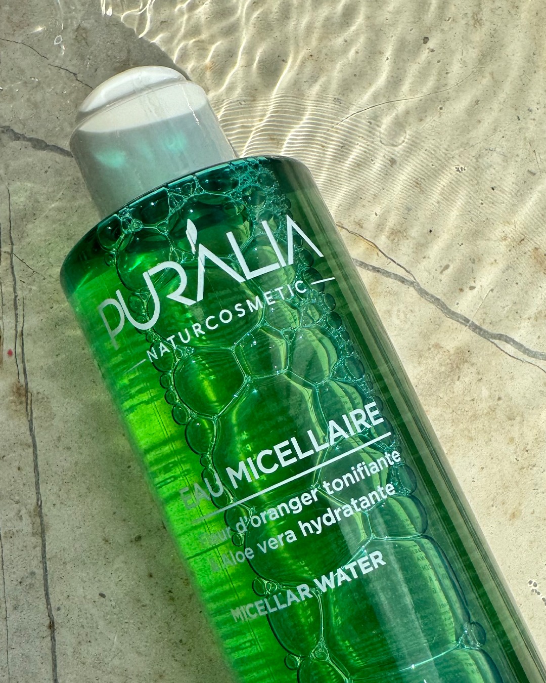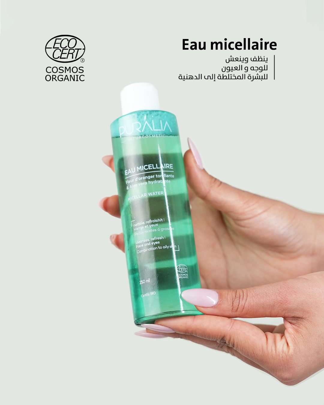 Rituel quotidien de beauté, l’Eau Micellaire Puralia nettoie et démaquille le visage et les yeux en un seul geste. Formulé à base d’eau de fleur d’oranger tonifiante et d’aloe vera aux vertus hydratantes, elle respecte l’équilibre naturel de la peau, même les plus sensibles. La peau est alors fraîche, douce et confortable.