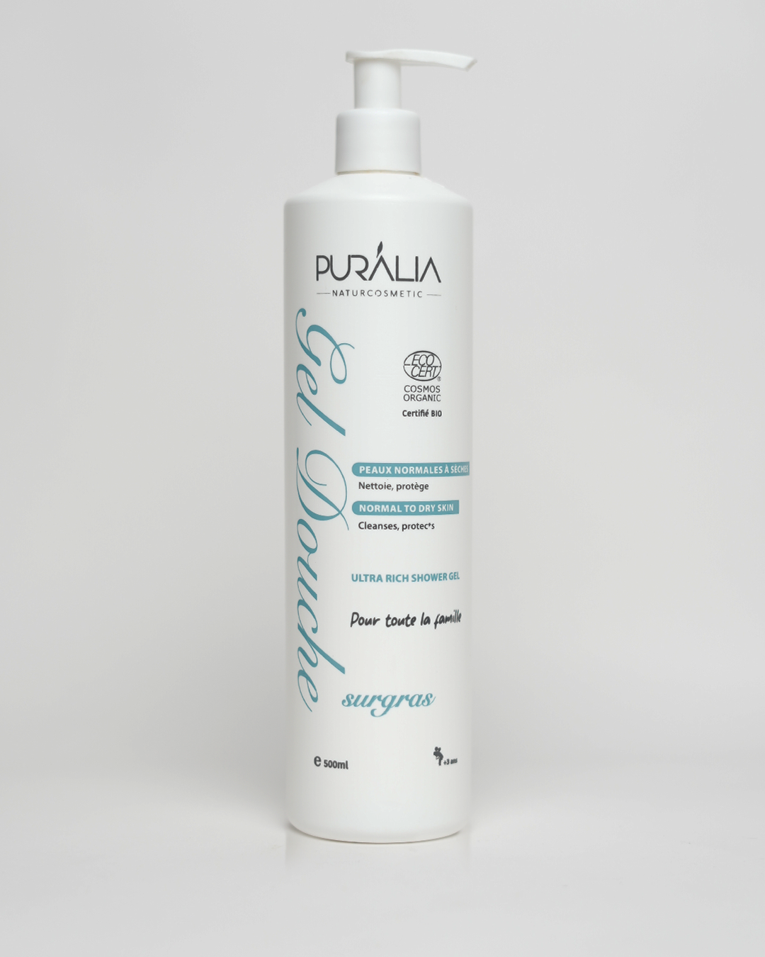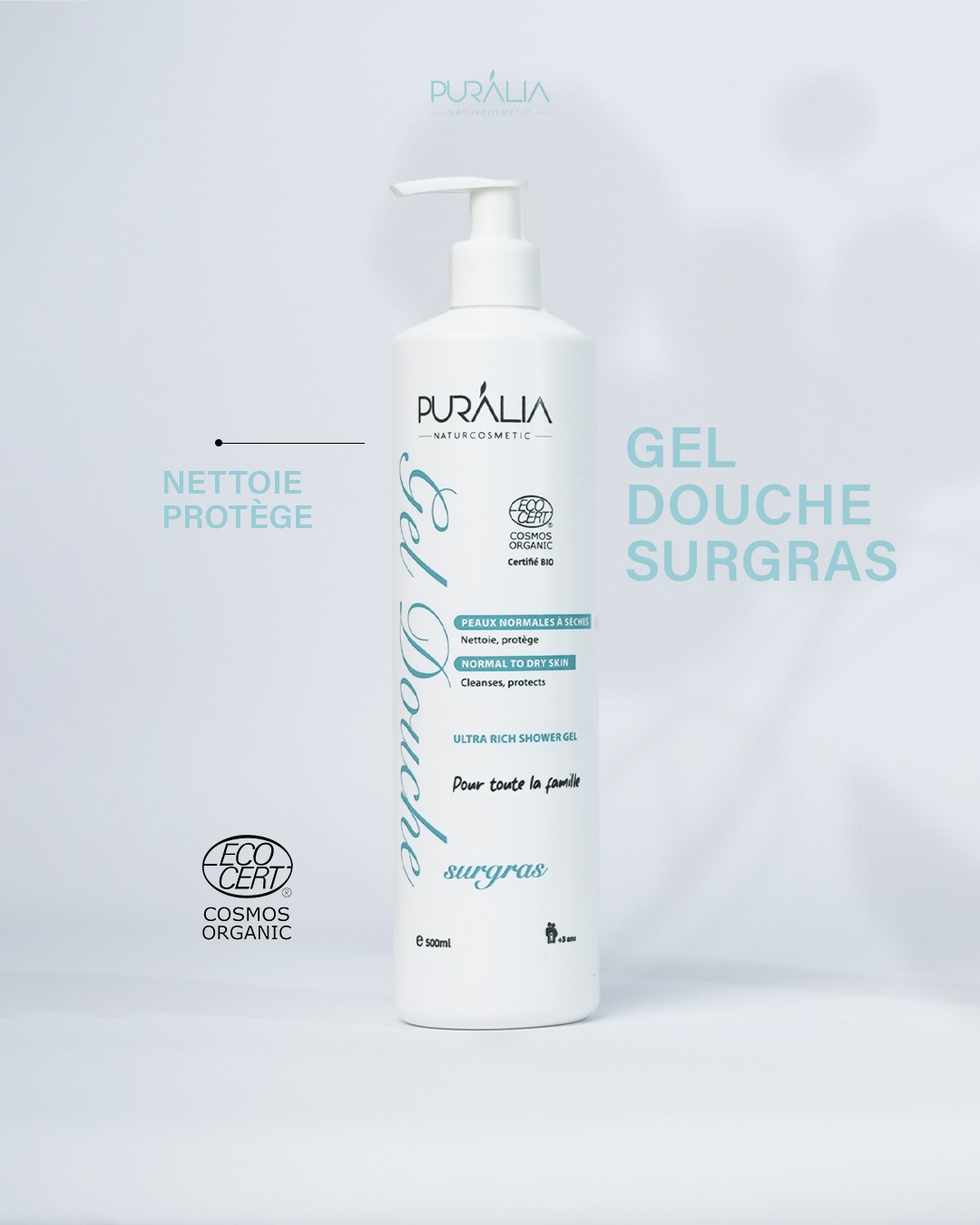 Sans savon et enrichi à l’aloe vera et en glycérine végétale, le gel douche surgras PURALIA nettoie la peau en douceur sans la dessécher et l’aide à préserver son film hydrolipidique. Sa mousse agréable laisse un léger parfum sur la peau, faisant de la douche un véritable moment de bien-être.