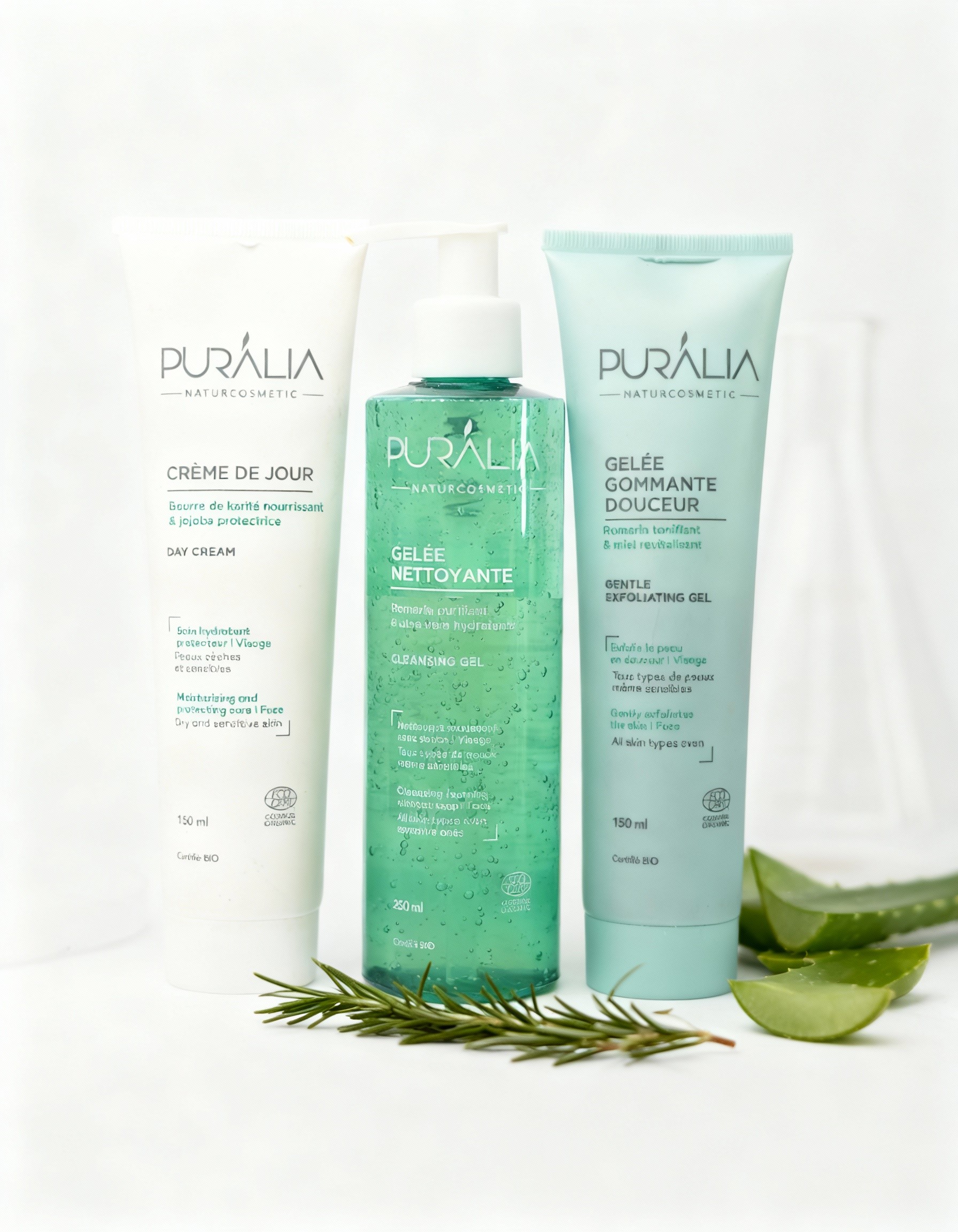 Ce pack réunit trois soins complémentaires formulés à partir d’actifs naturels et certifiés bio par Ecocert :